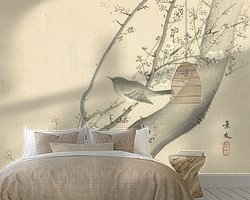 Bird in tree with white blossom by Matsumura Keibun - 1892 by Gave Meesters