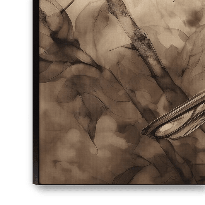 Buy this bird art Bird on a twig among the leaves by But First Framing on canvas, ArtFrame, poster and wallpaper, printed on demand in high quality.