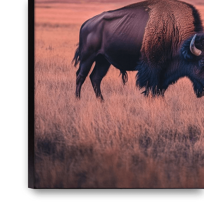 Buy this landscape artwork Bison at dusk by Poster Art Shop on canvas, ArtFrame, poster and wallpaper, printed on demand in high quality.