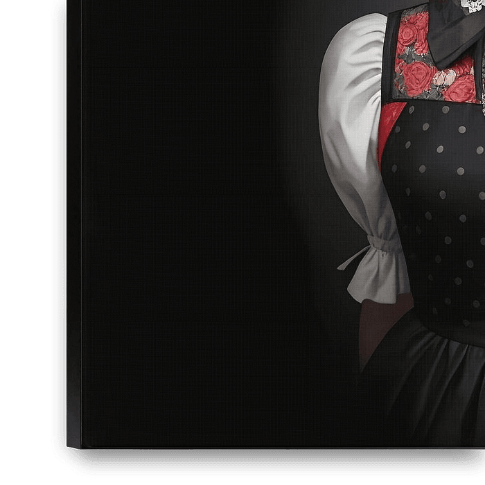 Buy this digital art artwork Black Forest girl with traditional costume and rose hat by YArt as a reproduction on canvas, ArtFrame, poster and wallpaper, printed on demand in high quality.