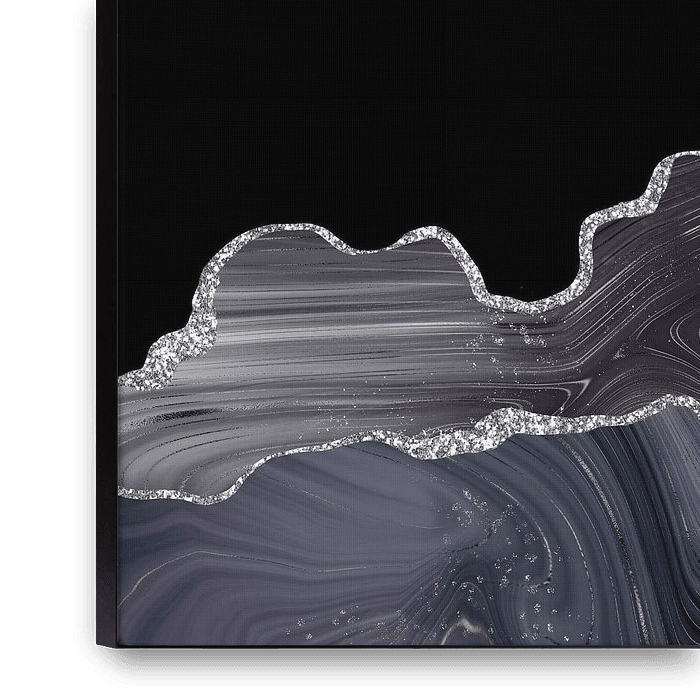 Buy this modern artwork Black & Silver Glitter Agate Texture 03 by Aloke Design on canvas, ArtFrame, poster and wallpaper, printed on demand in high quality.