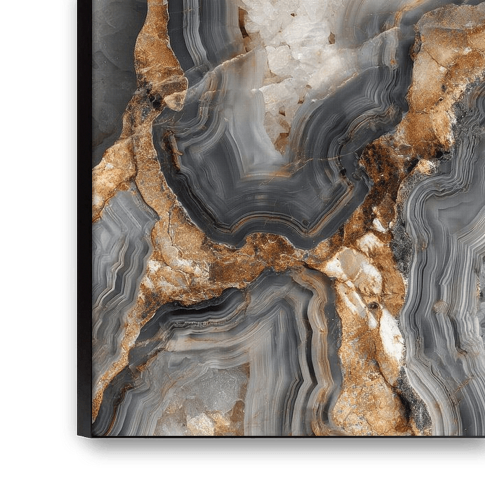 This image captures the essence of agate in a powerful black and white composition. The sharp crystals in the centre form a stunning contrast to the dark, almost liquid-looking outer edge. This art print adds luxury, drama and elegance to any space. Perfect for interiors with a modern or industrial feel. A fantastic slab best described as: black agate, crystal core decoration, agate wall art, luxury stone print, natural black and white art.