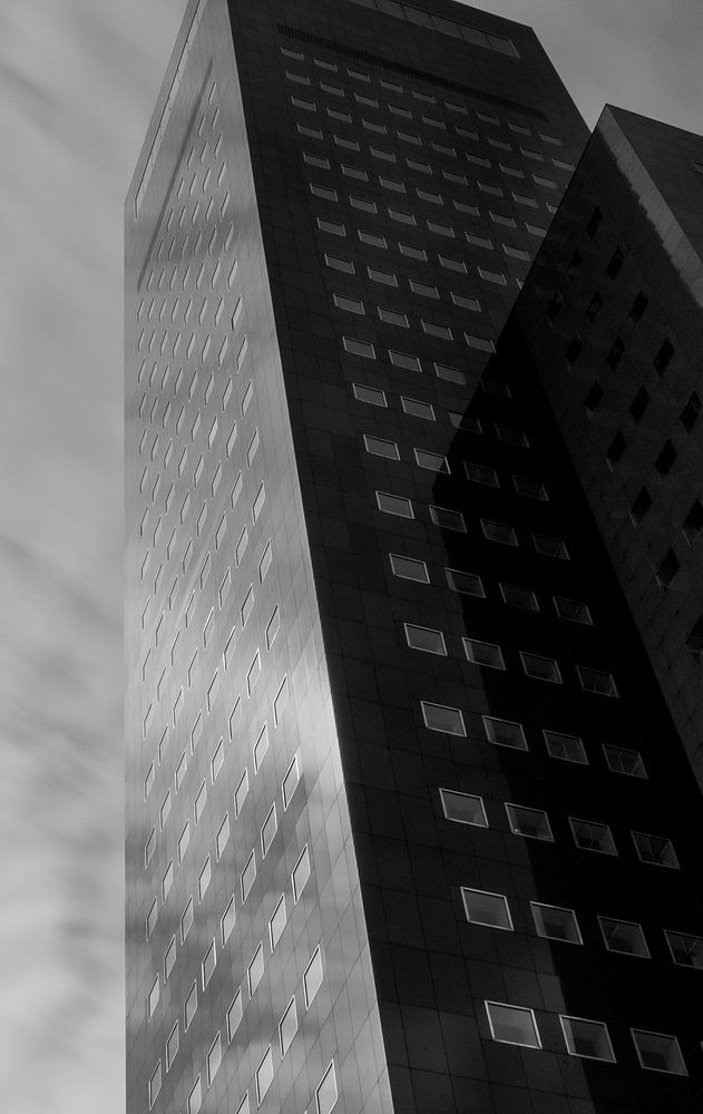 Long exposure in black and white of the high-rise office building in Leeuwarden, the Netherlands