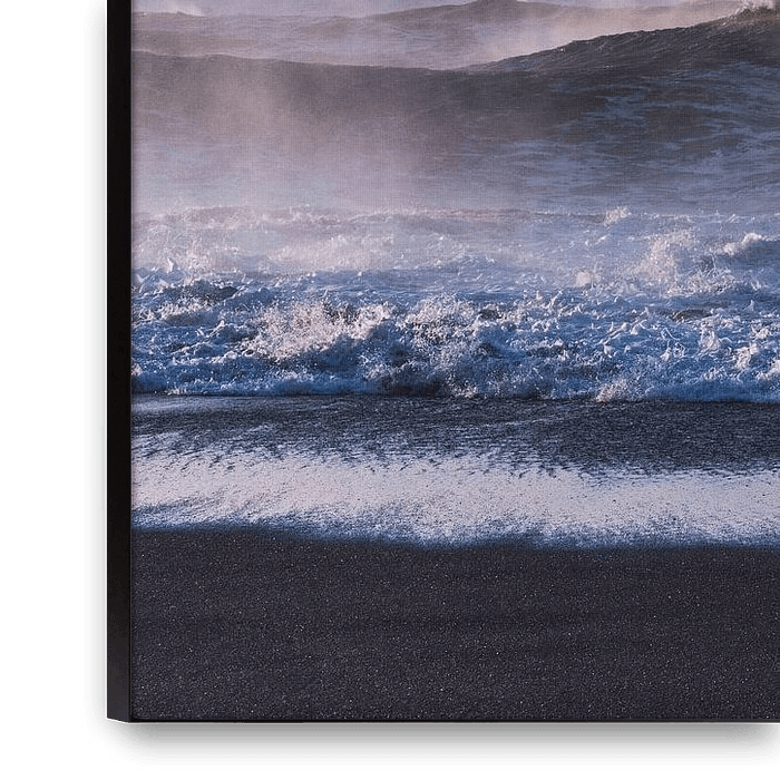 Buy this landscape artwork Black beach | Iceland | ocean | bird | purple blue by Femke Ketelaar on canvas, ArtFrame, poster and wallpaper, printed on demand in high quality.