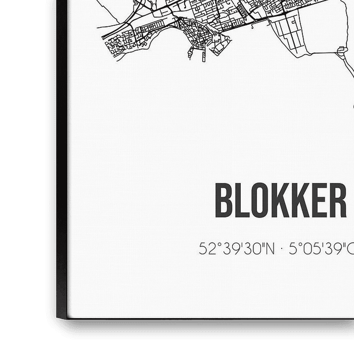 Black and white map, street map or street plan of Blokker. Blokker is located in the municipality of Hoorn, province of North Holland. On the city map all public roads in Blokker are included. Furthermore, the map is provided with the coordinates of the center of Blokker.