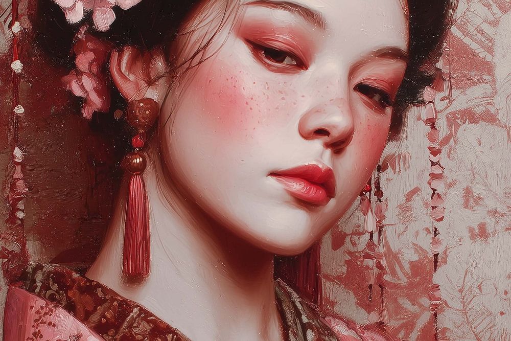 A nod to the fifties, while in contemporary, romantic colours, this Western-styled geisha gives both an oriental and a romantic feel to any room.