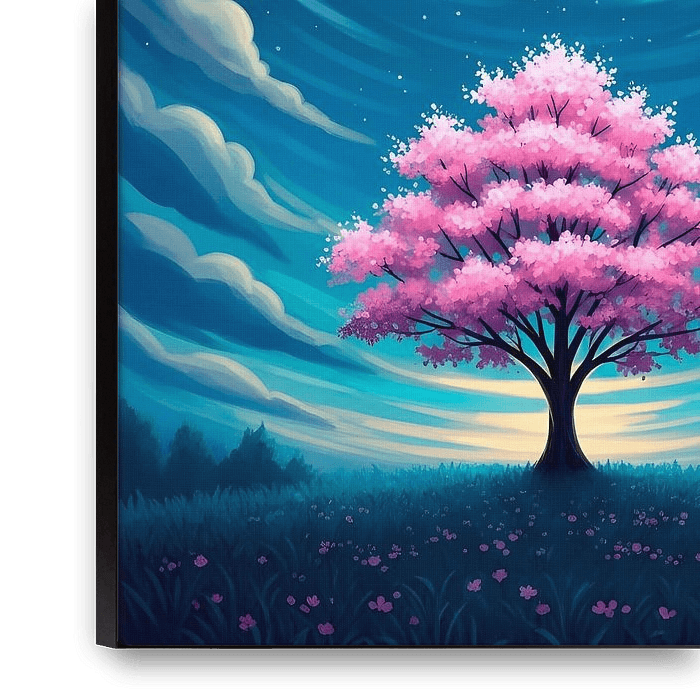 Buy this digital art artwork Blossoming Tree Under a Magical Twilight Sky by DNArt Gallery's as a reproduction on canvas, ArtFrame, poster and wallpaper, printed on demand in high quality.