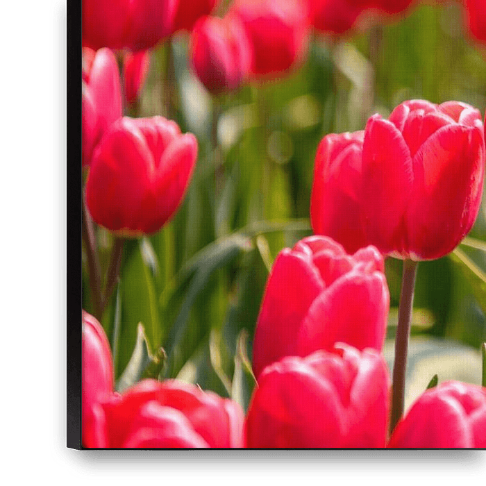 Buy this flower art Blossoming red and pink tulips in a field during a beautiful spring day by Sjoerd van der Wal Photography on canvas, ArtFrame, poster and wallpaper, printed on demand in high quality.