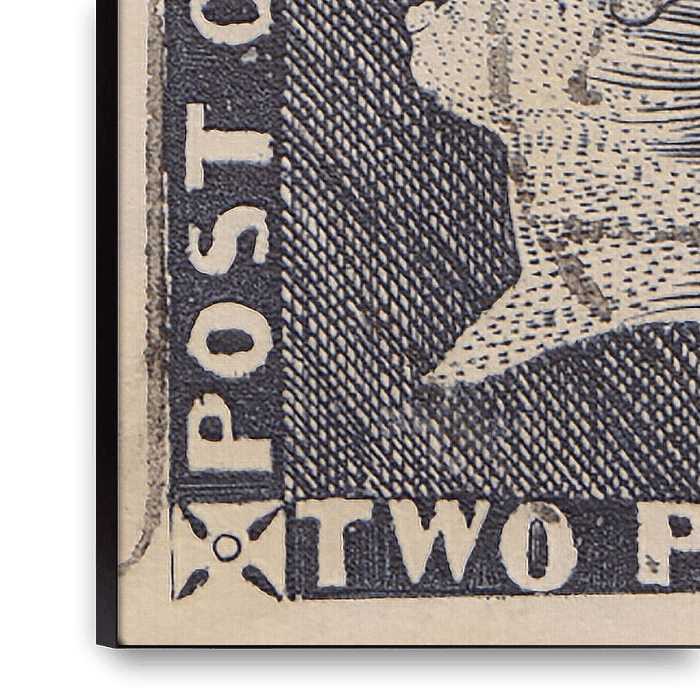 Two penny blue Mauritius with Queen Victoria on it. Of this misprint (post office instead of post paid) there are only ten in circulation. Probably the most expensive stamp of the world.