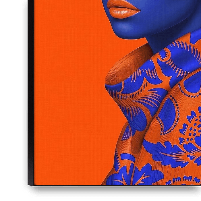 This digital artwork by artist René van den Berg is a bold, graphic reinterpretation of the Girl with a Pearl Earring, in which colour and form play the leading role. The classic portrait is completely detached from its historical context and transformed into a powerful, almost iconic image. The intense cobalt blue skin contrasts…