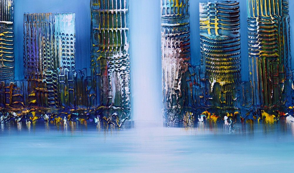 Buy this modern artwork Blue Skyline by Gena Theheartofart on canvas, ArtFrame, poster and wallpaper, printed on demand in high quality.