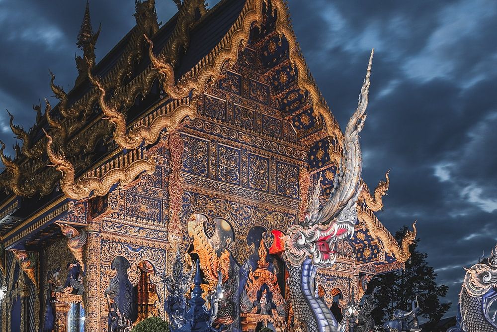 Wat Rong Suea Ten, or the "Blue Temple" is a Buddhist temple in Chiang Rai, Thailand, known for its striking modern artistic design.