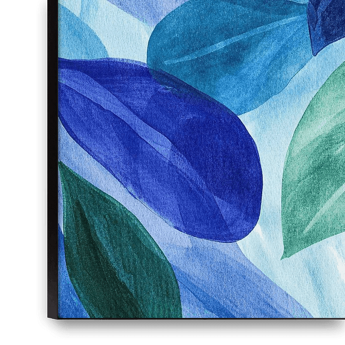 This stunning design brings the beauty of nature to life in an abstract watercolour style. The use of deep shades of blue combined with fresh green accents creates a harmonious and calming look. The overlapping leaves add a sense of depth and movement, making this piece ideal for decorating a modern or minimalist space. Perfect for…