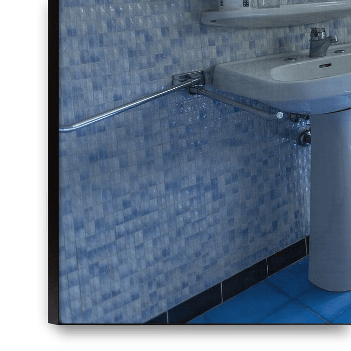 A bright blue bathroom in the large abandoned Villa Vaiken.