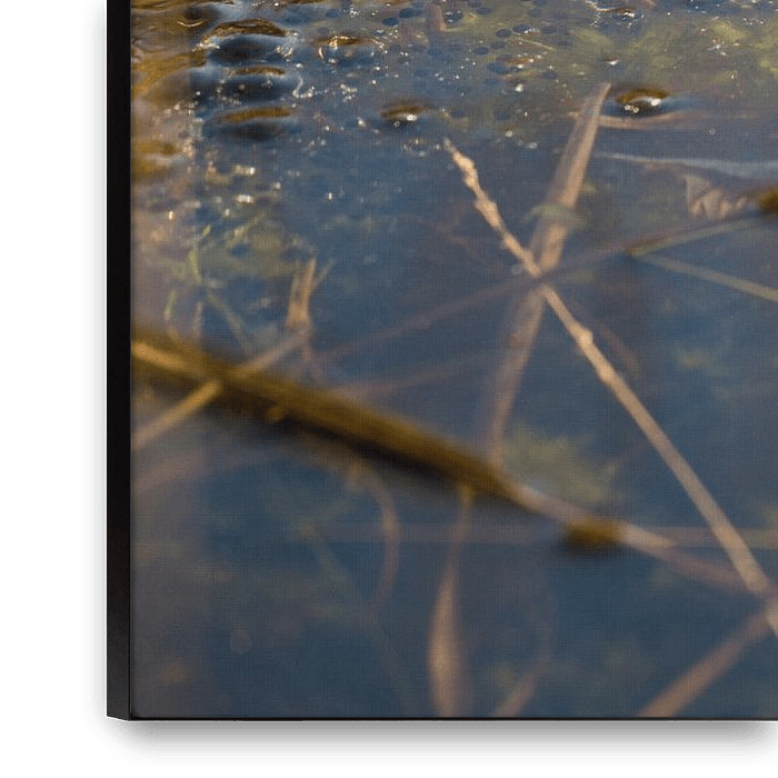 Buy the photo Blue frog swims between frogspawn in a fen by Ger Beekes on canvas, ArtFrame, poster and wallpaper, printed on demand in high quality.