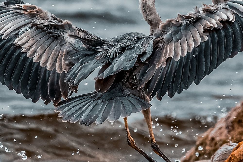 Just before the landing is completed, you can see the heron with the splashing water. I thought it was a wonderful moment to capture in the photo.