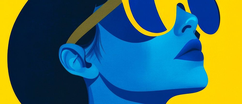 A vibrant contrast of bright yellow and cool blue captures the fascinating silhouette of a self-confident woman. Her large, round sunglasses radiate a cool nonchalance, while the flowing lines of her hairstyle convey elegance. This work of art brings a fresh bounce to any living room and automatically puts you in a good mood.