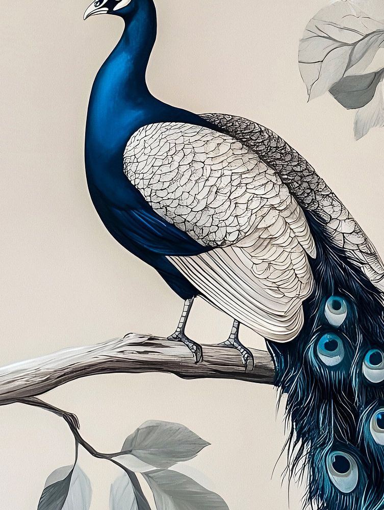 Buy this bird art Blue peacock by But First Framing on canvas, ArtFrame, poster and wallpaper, printed on demand in high quality.