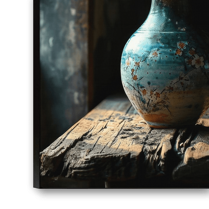 On a weathered wooden table flaunts a simple splendour: a blue vase filled with a colourful collection of flowers. The contrast between the weathered wood and the vibrant colours of the flowers and vase creates a harmonious scene. The blue tones of the vase dance with the warm tones of the wood, while the flowers pay tribute to natural beauty. The hushed composition captures a moment of serenity and brings to life the essence of rustic simplicity, where every detail on the old table seems to whisper a story.
