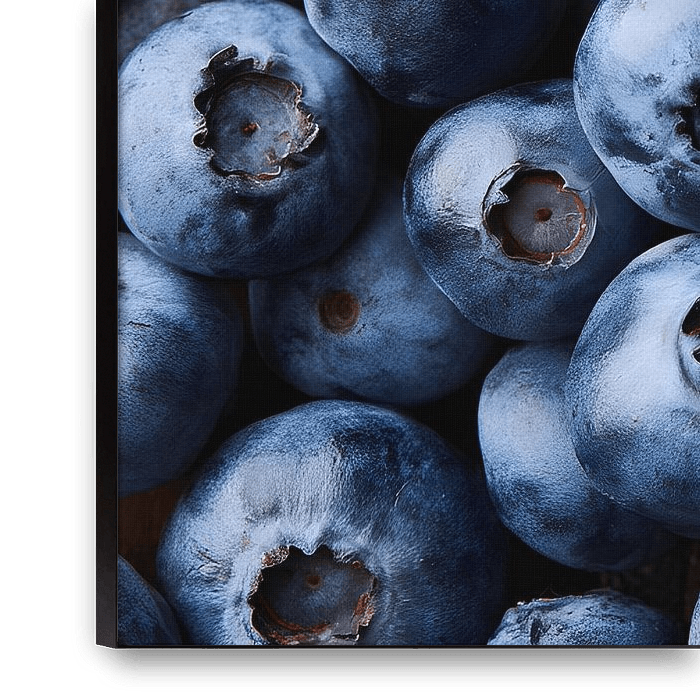 This intense food art motif shows a close-up of fresh blueberries, whose deep blue to violet colour tones create a fascinating visual depth. The fine surface textures, the natural ripeness and the variation between matt and shiny areas bring the berries to life - almost as if you could feel their juiciness directly.