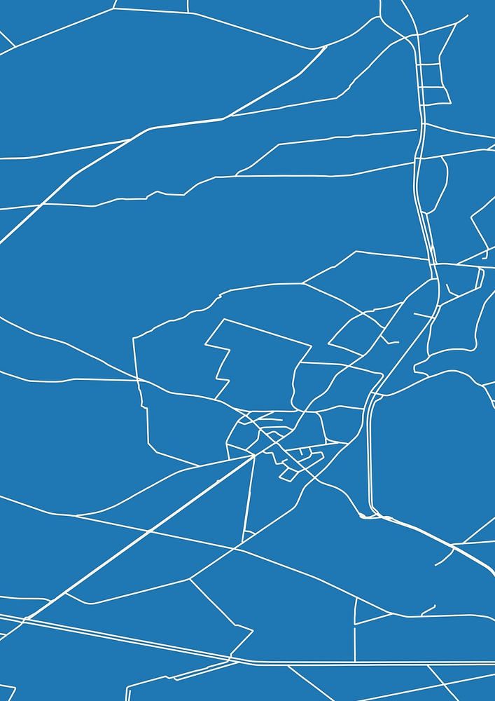 Blueprint of the map / map of the Dutch town of Lemele, located in municipality of Ommen, province of Overijssel. The map contains all public roads and the coordinates of the center of Lemele.