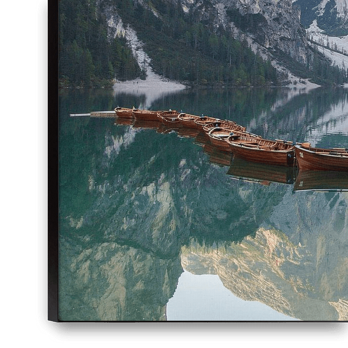 Buy this landscape artwork Boat house at Pragser Wildsee by Bas Rutgers on canvas, ArtFrame, poster and wallpaper, printed on demand in high quality.
