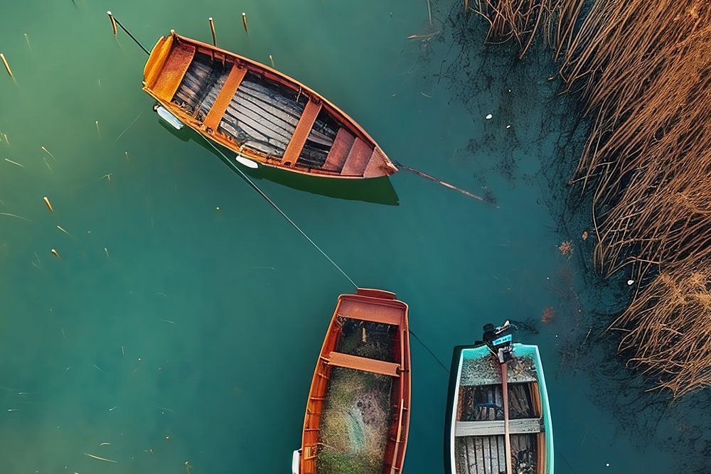 Buy this landscape artwork Boat romance by fernlichtsicht on canvas, ArtFrame, poster and wallpaper, printed on demand in high quality.