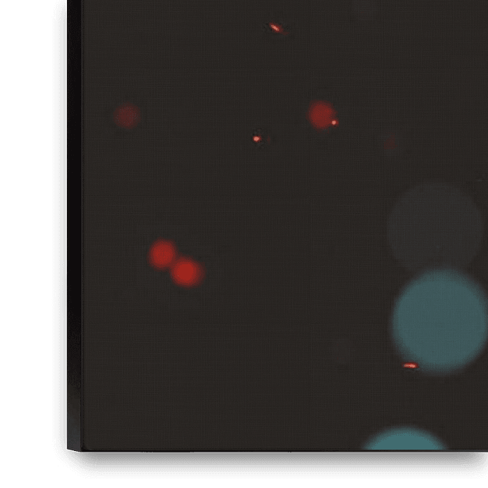 Buy this abstract artwork Bokeh lights in cyan and red colouring by Besa Art on canvas, ArtFrame, poster and wallpaper, printed on demand in high quality.