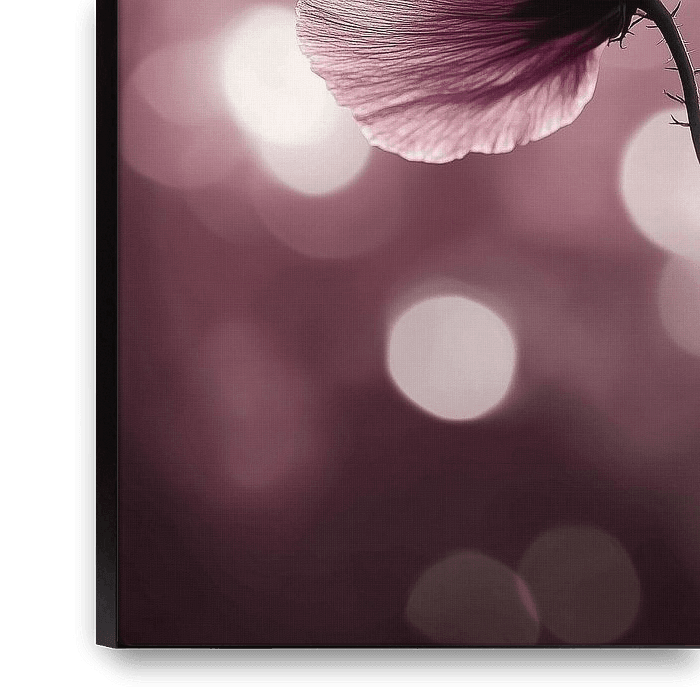 Deze afbeelding vangt de essentie van verfijnde schoonheid en subtiele verfijning door de delicate klaproos in haar fragiele glorie vast te leggen. De bloemensteel, dun en doorschijnend als een bijna onzichtbare draad, lijkt bijna gewichtloos terwijl deze zich uitstrekt in een verfijnde lijn. Het zachte bokeh-effect op de achtergrond…