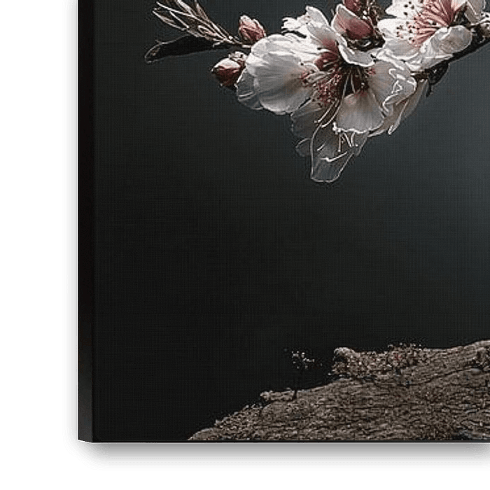 The flowers stand out brightly against the dark background, and the whole thing exudes natural elegance. This image is a subtle yet powerful addition to a stylish interior.