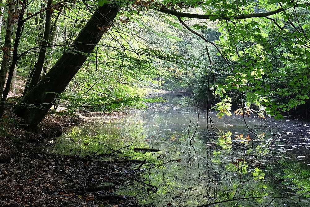 Bos sloot landschap bomen bladeren.