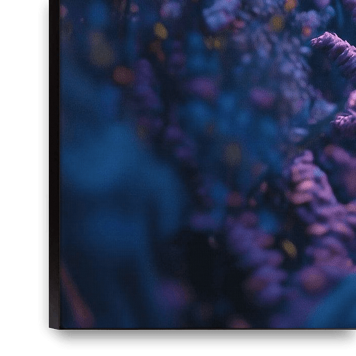 A profound and compelling work of art in which botanical shapes merge in a magical play of colours of purple and blue. A luxurious centrepiece that adds character and a dreamy atmosphere to your interior.