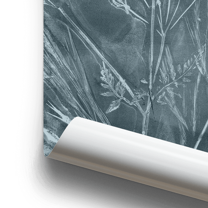 Monotype prints of real flower, plants of grasses in wabi-sabi style.