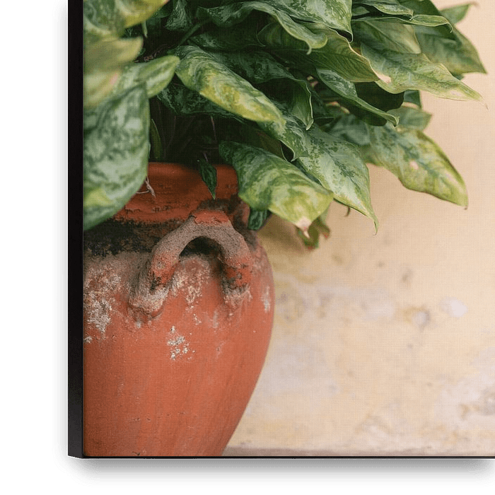 Convent de San Bernardino de Siena in Valladolid is an old convent that you can visit as a tourist. This is a close up of a plant against a pale yellow wall. A photo with a botanical vibe that fits perfectly in botanical, modern or scandinavian interior.