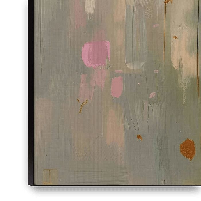 Botanical , modern and abstract in Japandi style. Pastel colours, including pink and also a hint of gold. A special eye-catcher for your interior! Choose the format and material yourself and make it your own.