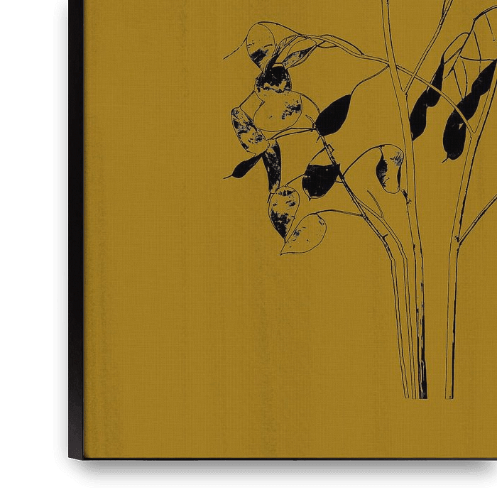 A modern interior is not complete without a beautiful botanical print. On this print you can see the honesty, Lunaria. The beautiful ochre yellow background color fits in many interior styles.