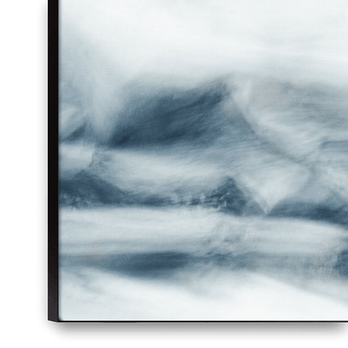 A photographic abstract artwork in shades of blue-grey. 'Painted' with the camera, as it were. An abstract illusion of sea and surf. From my photographic art project 'Elementary'.