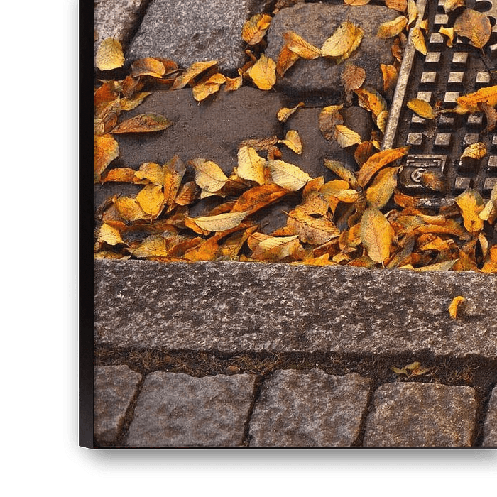 Buy the photo Bremen key on canal lid with yellow autumn foliage and kerbs, Bremen, Germany I Coat of arms on an I by Torsten Krüger on canvas, ArtFrame, poster and wallpaper, printed on demand in high quality.