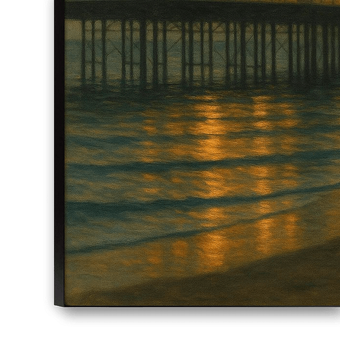 Ideal for coastal homes, bedrooms, or calm interiors, Brighton’s Golden Pier brings timeless stillness to any space. It celebrates solitude not as distance, but as beauty — a Hopper-inspired meditation in light and water.