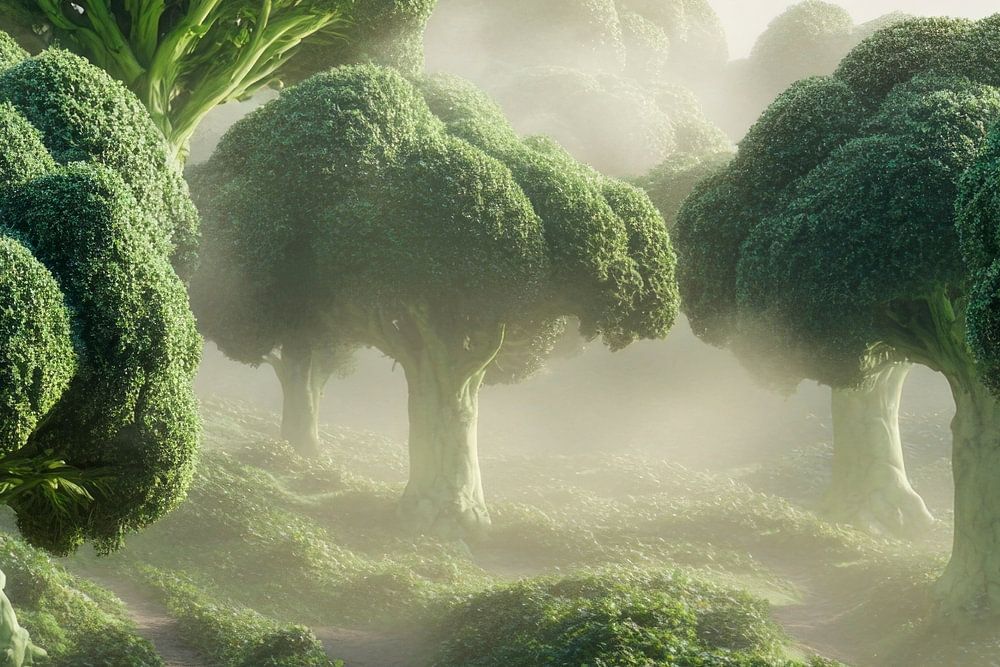 In an enchanting landscape, bizarre, tree-like shapes are lined up in lush greenery and invite you to take dreamy walks. Wisps of mist lend the scene a mysterious aura and stimulate the imagination. This work of art is ideal for a living room, where it stimulates conversation and creates a calming atmosphere.