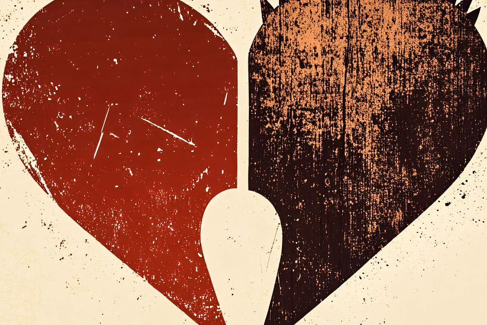 This design shows the symbolism of a broken heart, interwoven with powerful contrasts and textures. It plays with the imagery of love and pain, and has an impactful look that evokes emotions. The red part of the heart represents the soft side of love, while the brown, sharp part reflects the harsh reality of a broken relationship. This design would fit perfectly in a modern space where people can appreciate the contrast between soft and hard emotions. It offers an artistic representation of complexity and duality, making it a bold choice for interior decoration. The design exudes an emotional power that immediately catches the eye. Whether hanging in a living room or bedroom, this design is sure to start conversations.