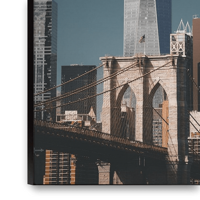 The Brooklyn Bridge, completed in 1883, is one of New York's most famous landmarks and a technical masterpiece of its time. It connects Manhattan and Brooklyn and was the first steel suspension bridge to be built. Its impressive design, characterised by massive granite pillars and a network of steel cables, makes it a popular photo…
