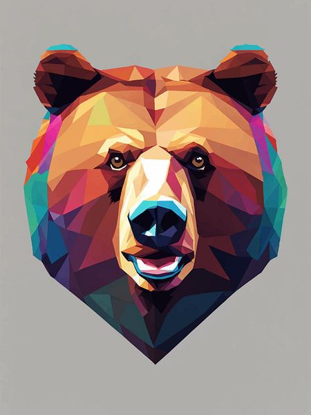 Explore the vibrant world of pop art with a striking depiction of a brown bear. This artwork combines bold colors, dynamic patterns, and playful textures to capture the essence of this majestic creature in a modern, eye-catching style. The contrast between nature and urban aesthetics invites viewers to appreciate wildlife in a new light.