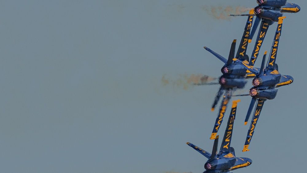 The Blue Angels is the flight demonstration team of the U.S. Navy and U.S. Marine Corps. Among other things, the team is known for its very tight and close flown formations.