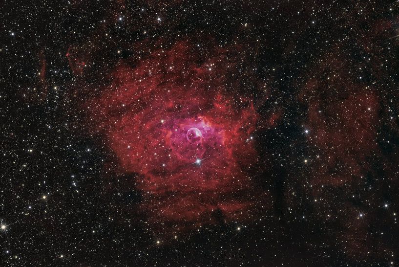 Buy this abstract artwork Bubble Nebula – Cosmic Fireball (NGC 7635 in Deep Red) by Christiaan Berger on canvas, ArtFrame, poster and wallpaper, printed on demand in high quality.