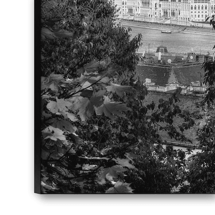 The Parliament of Budapest in a beautiful autumn atmosphere in black and white.