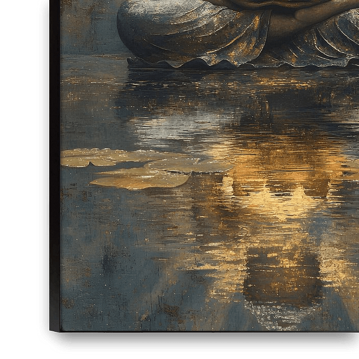A buddha statuesit in a lotus position in the water