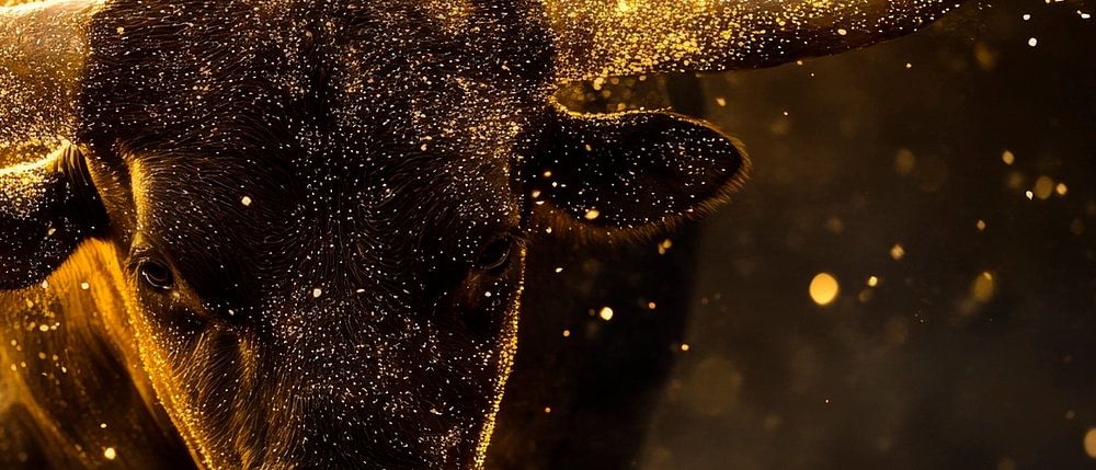 A powerful bull breaks through the darkness, enveloped in golden sparks that emphasise its majestic presence. The dynamic radiance and vibrant energy add character to any room. Ideal for the living room, where it can stimulate conversation and attract attention. A true statement of courage and strength!