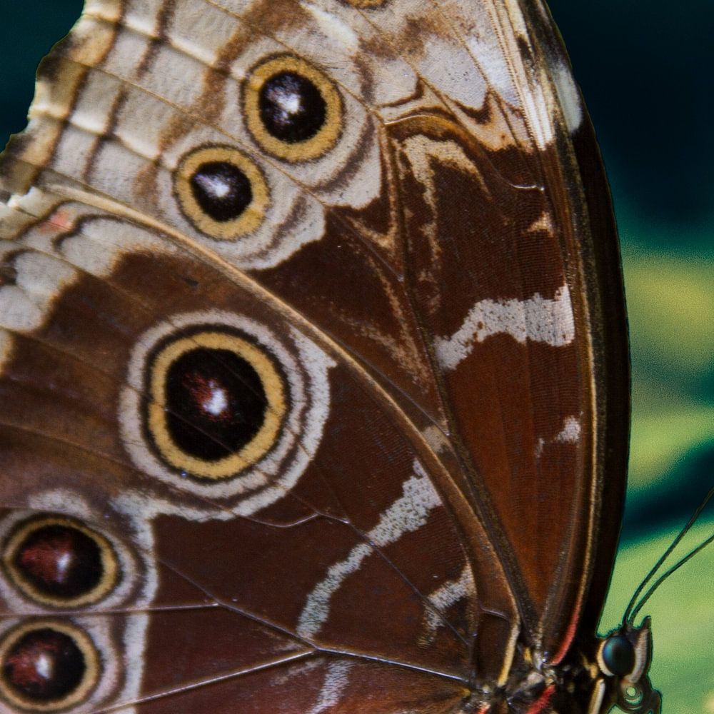 Morpho peleides is a butterfly in the subfamily Satyrinae. The underside of the wings is brown with eye spots.