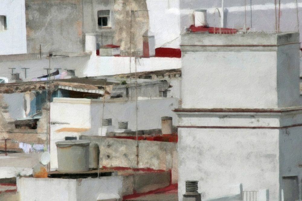Photo above the rooftops of Cádiz (Andalusia), Spain. Subsequent image processing created a picturesque effect.